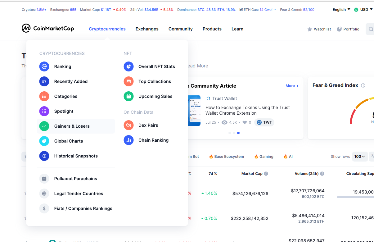 dataframe = dataframe.drop(columns=["24h"]).sort_values(by=["24h(%)"], ascending=False)