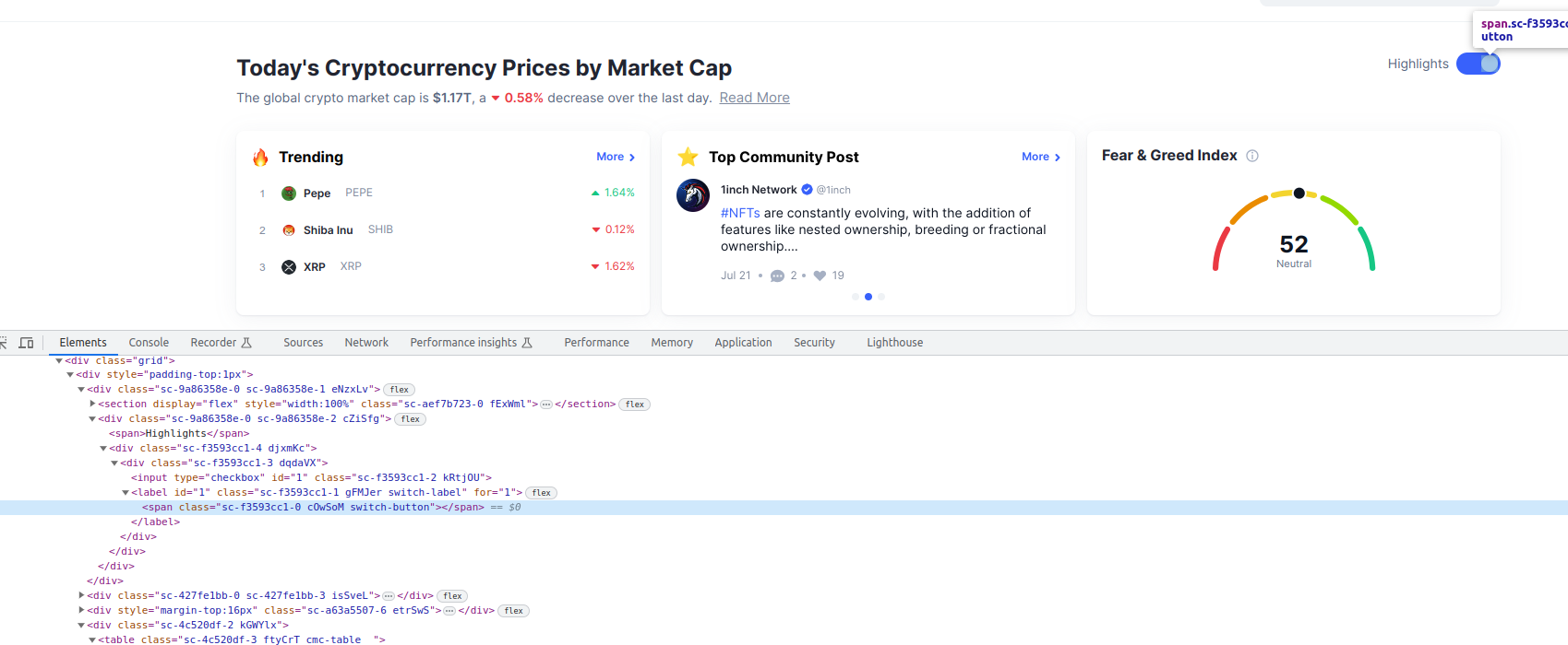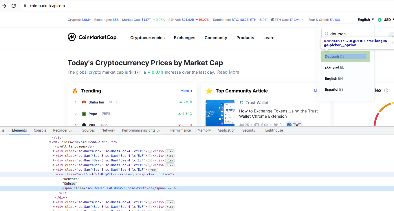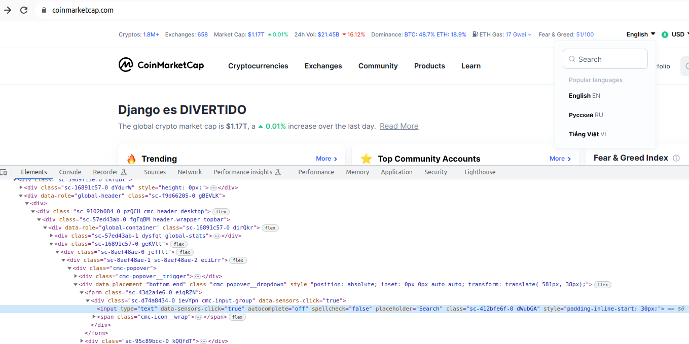 En este apartado vamos a utilizar Selenium para extraer datos sobre criptomonedas, de este sitio web.