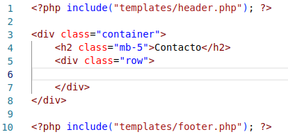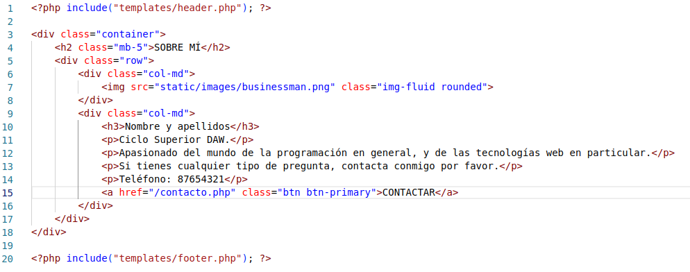 Creamos también un fichero sobre_mi.php que contenga lo que antes contenía contacto.php: