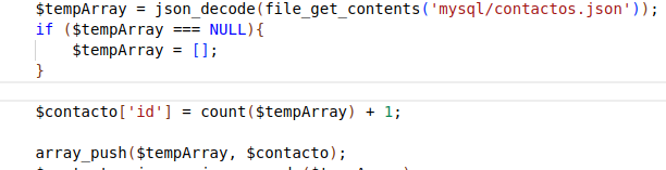 Vamos a acometer el tercer punto. Para ello necesitamos almacenar un identificador único por cada registro en contactos.json. Lo hacemos con la siguiente línea (en contacto.php):
