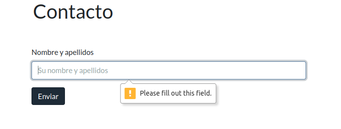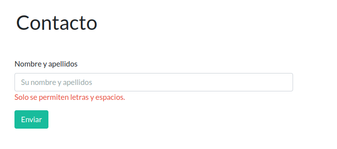 Empezamos con el propio formulario y con el campo "Nombre y apellidos". Insertamos el siguiente código en contacto.php: