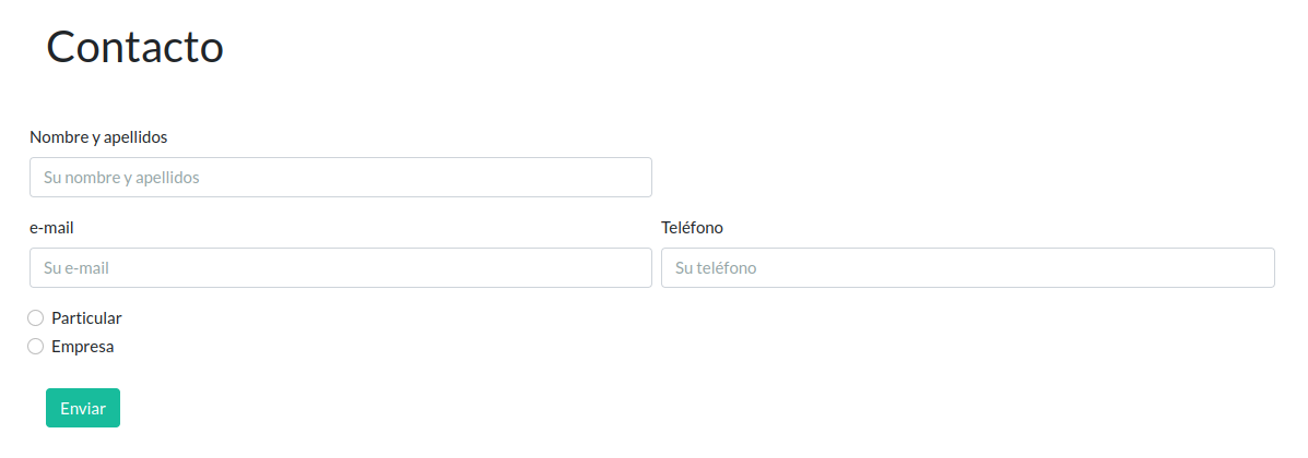 Ahora nos planteamos qué campos necesitamos para que un posible usuario quiera contactar con nosotros. Se proponen los siguientes:
