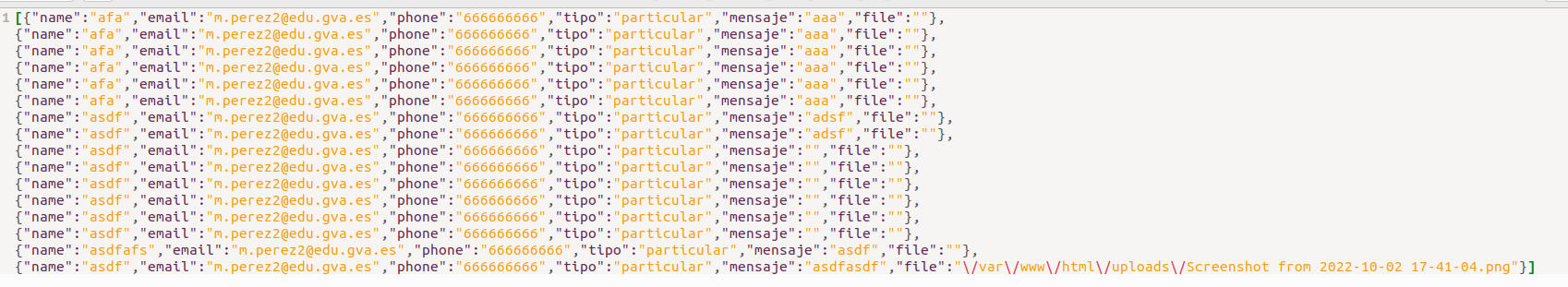 Si consultamos el fichero contactos.json veremos todos los registros que hemos creado: